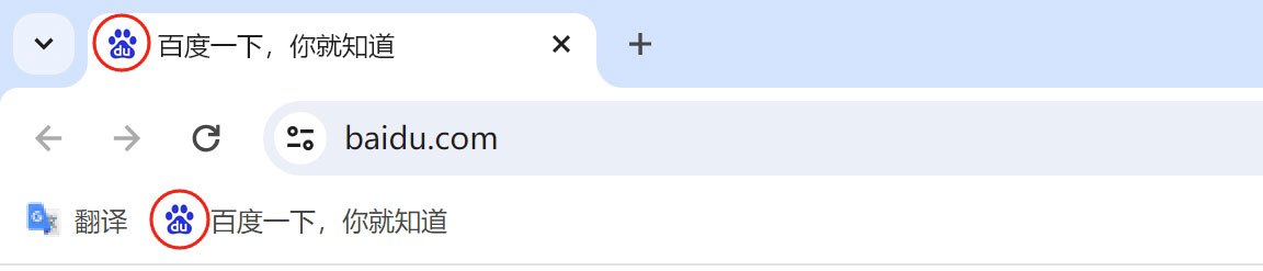 1、favicon.ico通常用作网址url的前置缩略图,作为网站标志,favicon.ico显示在浏览器的地址栏或标签上,如下图圈中的地方,目前几乎所有浏览器都支持ico图标。